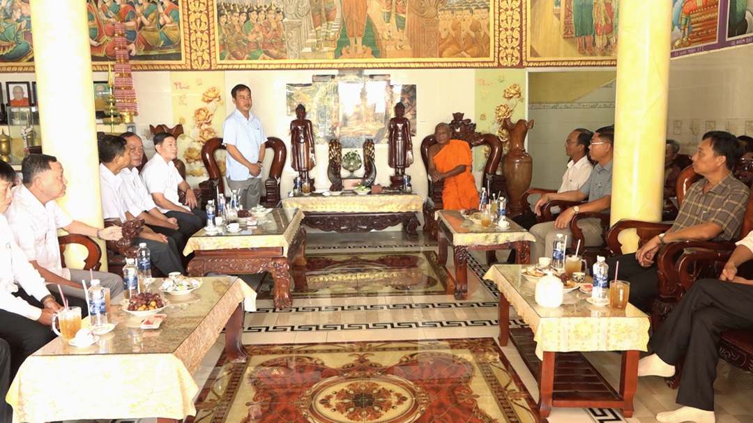 Tại buổi gặp mặt, ông Danh Phúc - Tỉnh ủy viên, Giám đốc Sở Dân tộc và Tôn giáo tỉnh An Giang gửi lời chúc mừng năm mới đến các vị hòa thượng, chư tăng và đồng bào Khmer; đồng thời thông tin về tình hình phát triển kinh tế - xã hội của tỉnh, nhất là kết quả sau khi thực hiện sắp xếp đơn vị hành chính từ ngày 01/7/2025. Trưởng đoàn cũng nhấn mạnh việc triển khai hiệu quả các chương trình mục tiêu quốc gia dành cho vùng đồng bào dân tộc thiểu số, kêu gọi bà con tiếp tục phát huy tinh thần đoàn kết, giữ gìn an ninh trật tự, xây dựng đời sống văn hóa tại địa phương.