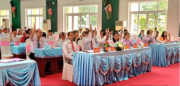 Đại biểu HĐND xã Khóa I, nhiệm kỳ 2021-2026 biểu quyết thông qua các nghị quyết quan trọng tại kỳ họp