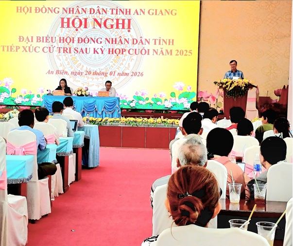 Sáng ngày 20/01, tại hội trường UBND xã An Biên, Tổ đại biểu số 21 Hội đồng nhân dân tỉnh An Giang khóa X, nhiệm kỳ 2021–2026 gồm ông Bùi Thanh Nhàn – Phó Trưởng Ban Văn hóa – Xã hội HĐND tỉnh và bà Lê Thị Hồng Tươi – Bí thư Đảng ủy xã Đông Thái đã có buổi tiếp xúc cử tri sau kỳ họp thường lệ cuối năm 2025. Tham dự kỳ họp còn có ông Trang Minh Tú – Phó Bí thư Thường trực Đảng ủy, Chủ tịch HĐND xã; ông Nguyễn Quốc Xinh – Phó Bí thư Đảng ủy, Chủ tịch UBND xã; cùng đại diện Ủy ban MTTQ Việt Nam xã, các phòng, ban chuyên môn và đông đảo cử tri trên địa bàn.