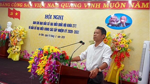Chiều ngày 10/3, Ban Chỉ đạo bầu cử đại biểu Quốc hội khóa XVI và bầu cử đại biểu HĐND các cấp nhiệm kỳ 2026 – 2031 xã An Biên tổ chức hội nghị nhằm đánh giá tình hình triển khai công tác bầu cử và đề ra nhiệm vụ trọng tâm trong thời gian tới. Ông Trần Chiến Thắng – Bí thư Đảng ủy, Trưởng Ban Chỉ đạo bầu cử xã chủ trì hội nghị.