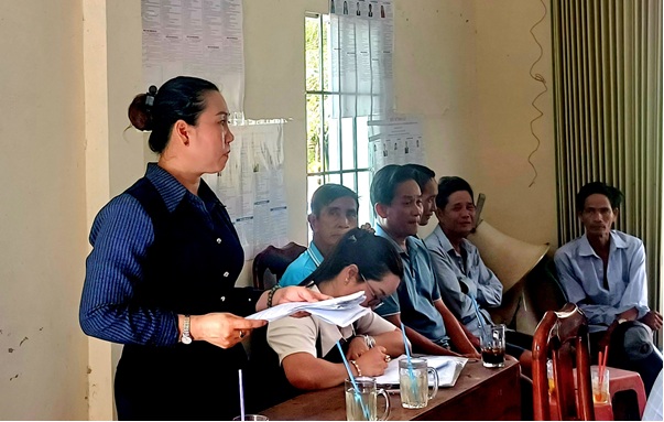 Bà Lê Kim Phiên – Phó Chủ tịch Ủy ban MTTQVN xã giới thiệu tóm tắt danh sách các ứng cử viên thuộc đơn vị bầu cử số 8