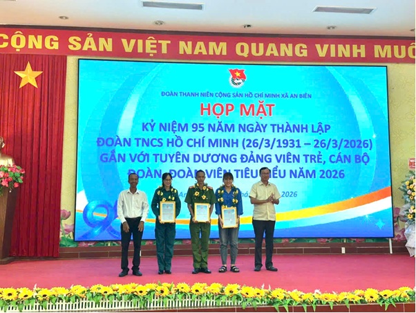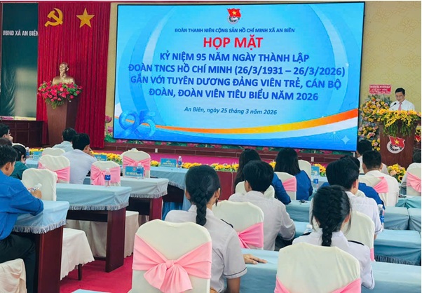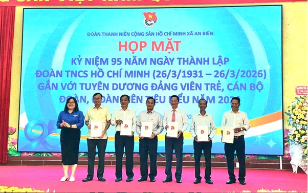 Nhân kỷ niệm 95 năm Ngày thành lập Đoàn Thanh niên Cộng sản Hồ Chí Minh (26/3/1931 – 26/3/2026), chiều ngày 25/3, Ban Thường vụ Xã đoàn An Biên vừa tổ chức họp mặt truyền thống và tuyên dương gương mặt trẻ, đảng viên trẻ, cán bộ Đoàn tiêu biểu năm 2026.