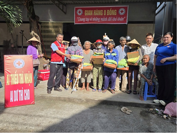 Ban tổ chức trao quà cho bà con khó khăn tại lễ khai trương Gian hàng 0 đồng
