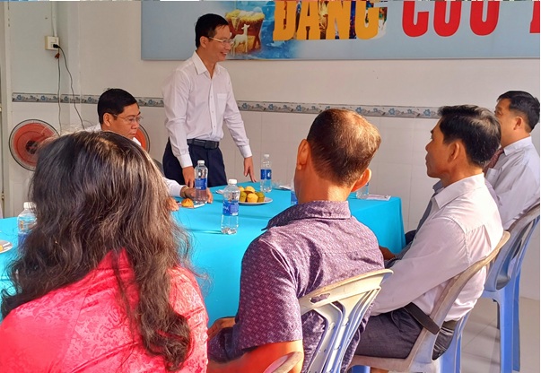 Phó Bí thư Thường trực Đảng ủy, Chủ tịch HĐND xã Trang Minh Tú thăm hỏi và chúc mừng tại Chi hội Tin Lành An Biên (ấp 5)