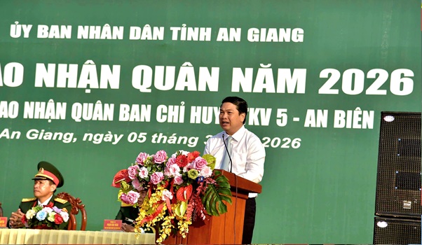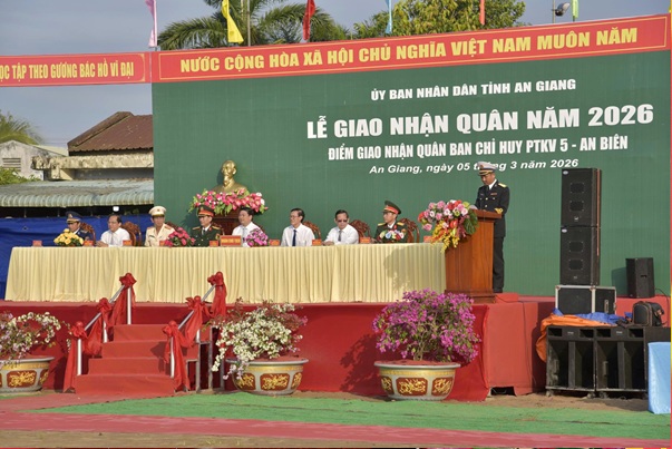 Sáng 5/3, tại Sở Chỉ huy Ban Chỉ huy Phòng thủ khu vực 5 – An Biên, lễ giao, nhận quân năm 2026 được tổ chức trang trọng, tiễn 505 thanh niên ưu tú lên đường thực hiện nghĩa vụ quân sự và nghĩa vụ tham gia Công an nhân dân. Đến dự buổi lễ có đồng chí Nguyễn Văn Sạch - Ủy viên Ban Thường vụ Tỉnh ủy, Trưởng Ban Nội chính Tỉnh ủy; đồng chí Lê Trung Hồ, Tỉnh ủy viên, Phó Chủ tịch UBND tỉnh An Giang; đại diện lãnh đạo Bộ Chỉ huy Quân sự tỉnh, Công an tỉnh; các đồng chí trong Hội đồng Nghĩa vụ quân sự tỉnh; lãnh đạo các sở, ban, ngành, đoàn thể tỉnh; lãnh đạo cấp ủy, chính quyền địa phương cùng đông đảo thân nhân các tân binh.
