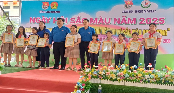 Sáng ngày 17/12, tại Trường Tiểu học Thứ Ba 2, Hội đồng Đội tỉnh An Giang phối hợp Xã đoàn An Biên và Ban Giám hiệu trường tổ chức “Ngày hội Sắc màu năm 2025” – Cuộc thi vẽ tranh dành cho thiếu nhi với chủ đề “Em vẽ sắc màu quê hương”. Ngày hội diễn ra trong không khí vui tươi, sôi nổi với sự tham dự của lãnh đạo Tỉnh đoàn, Hội đồng Đội tỉnh, đại diện UBND xã An Biên, Ban Giám hiệu nhà trường, thầy cô giáo cùng hơn 600 học sinh Trường Tiểu học Thứ Ba 2.