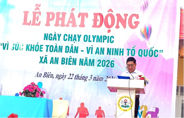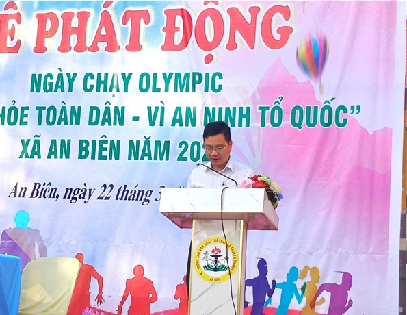 Phát biểu khai mạc buổi lễ, ông Võ Thanh Toàn – Phó Chủ tịch UBND xã An Biên nhấn mạnh ý nghĩa của Ngày chạy Olympic vì sức khỏe toàn dân – Vì an ninh Tổ quốc, nhằm hưởng ứng cuộc vận động “Toàn dân rèn luyện thân thể theo gương Bác Hồ vĩ đại”. Qua đó góp phần nâng cao nhận thức của người dân về việc rèn luyện thể dục thể thao, xây dựng lối sống lành mạnh, tăng cường sức khỏe, góp phần giữ vững an ninh trật tự tại địa phương.