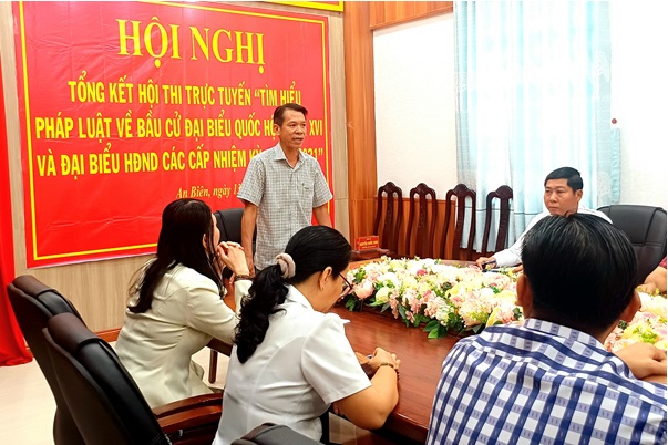 Sáng ngày 13/3, UBND xã An Biên tổ chức Hội nghị tổng kết Hội thi trực tuyến “Tìm hiểu pháp luật về bầu cử đại biểu Quốc hội khóa XVI và đại biểu Hội đồng nhân dân các cấp, nhiệm kỳ 2026 – 2031”. Tham dự hội nghị có ông Trần Chiến Thắng – Bí thư Đảng ủy, Trưởng Ban Chỉ đạo công tác bầu cử xã; ông Võ Thanh Toàn – Phó Chủ tịch UBND xã cùng các ban ngành, đoàn thể và tập thể, cá nhân đạt giải trong hội thi.