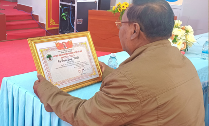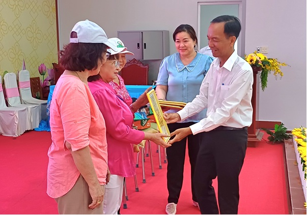 Chủ tịch Ủy ban MTTQVN xã Trần Văn Minh trao thư cảm ơn cho tập thể và cá nhân đồng hành cùng chương trình