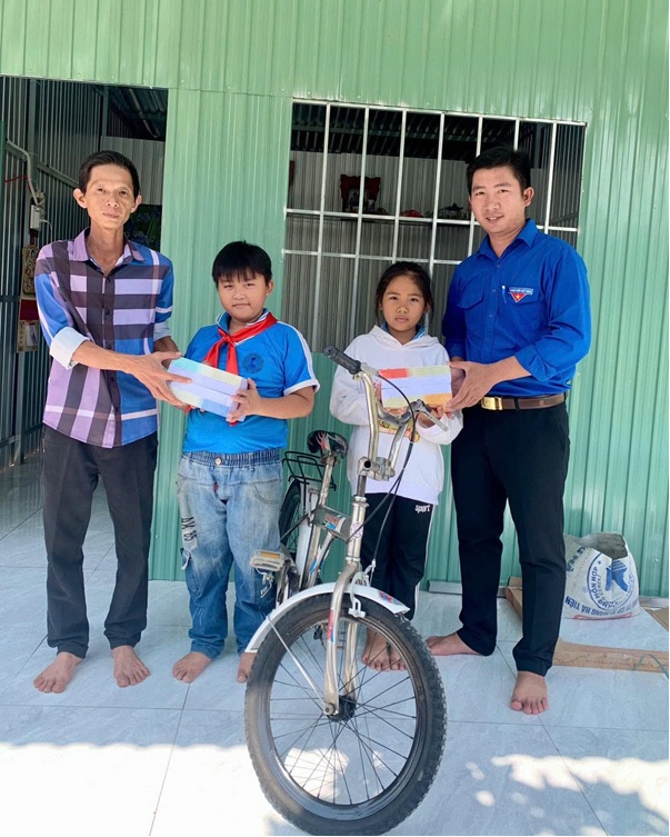 Đại diện Chi đoàn ấp Tây Sơn 3 trao tặng xe học sinh khó khăn