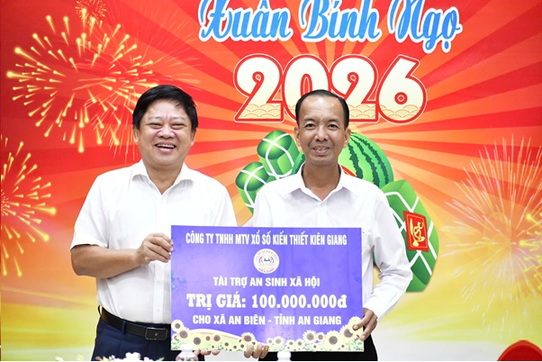 Dịp này, Đoàn công tác đã trao quà cho chính quyền địa phương và các đơn vị lực lượng vũ trang trên địa bàn xã. Công ty TNHH Xổ số kiến thiết An Giang hỗ trợ gói an sinh xã hội trị giá 100 triệu đồng cho xã An Biên. Đảng ủy, HĐND, UBND, Ủy ban MTTQ Việt Nam xã An Biên cũng trao tặng 1 phần quà cho gia đình chính sách ông Lê Minh Chiến, nguyên Bí thư Huyện ủy An Biên, hiện cư trú tại ấp 2, xã An Biên.